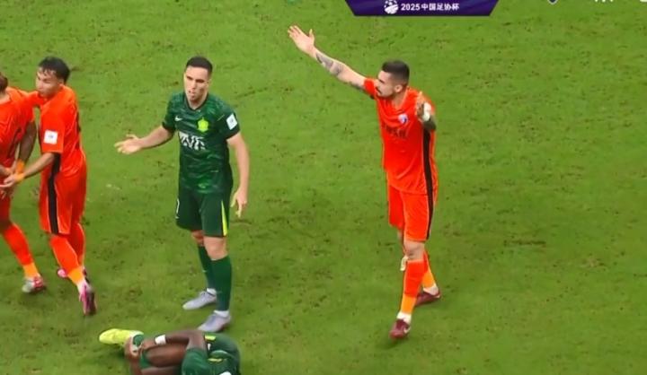 (场景回到采访间)布尔克皱着眉头说道:“和北京国安那场比赛,我个人觉得,法比奥的第一个进球犯规在先,可裁判没判。我后面那个动作确实犯规了,但我觉得不该判得这么重。”