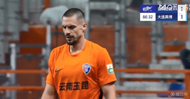 (场景切换至中超联赛第25轮比赛现场,9月19日,云南玉昆主场迎战大连英博)这场比赛里,布尔克多次参与进攻,包括角球战术和远射。(布尔克积极跑动,寻找机会)